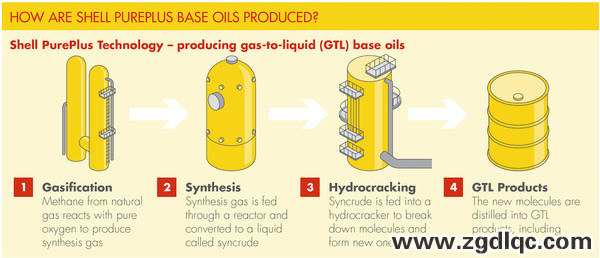 世界上第一代GTL基礎油裝置由殼牌公司研發(fā)而成,使用殼牌MDS(Shell Middle Distillate Synthesis)工藝,經(jīng)過加氫裂解和加氫異構(gòu)化、脫蠟等一系列繁雜的工藝之后得到基礎油產(chǎn)品。
